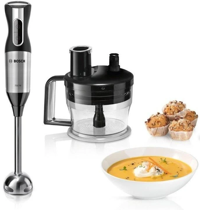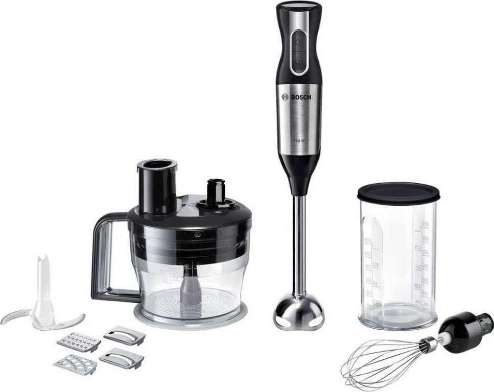 Armed with a QuattroBlade to help you create your culinary masterpieces, this hand blender makes light work of cooking. With four blades, this extra-sharp accessory delivers outstanding cutting action for fine results. Even blending large ingredients is effortless. Featuring a powerful 750 W motor, the Bosch MSM2610BGB helps you achieve perfect results every time, without making too much noise.