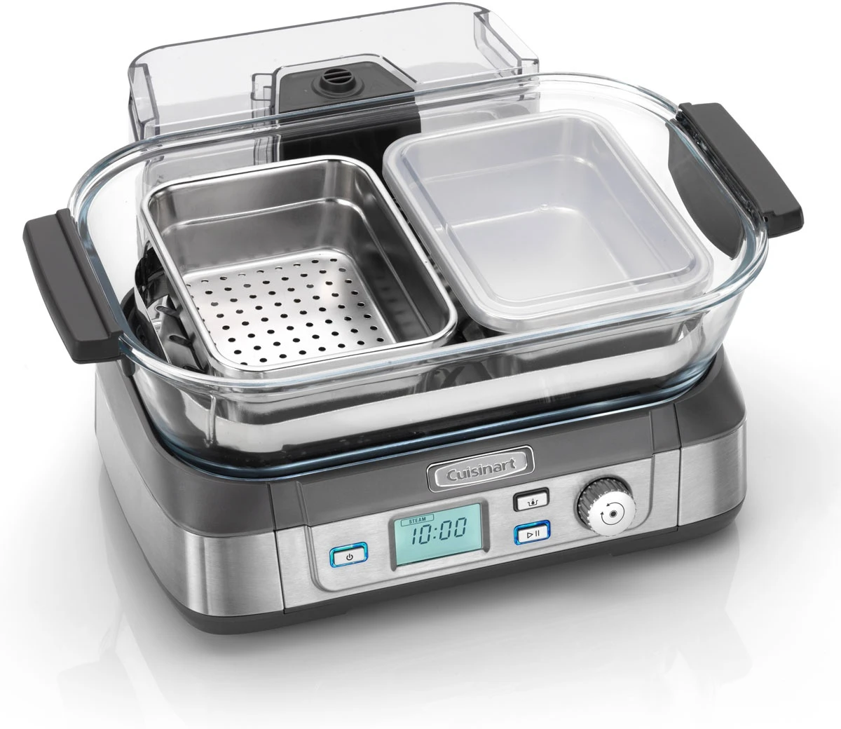 - Stylish, professional glass steaming bowl, which can be easily removed and used to serve your recipe directly at the dining table, without drips and spills