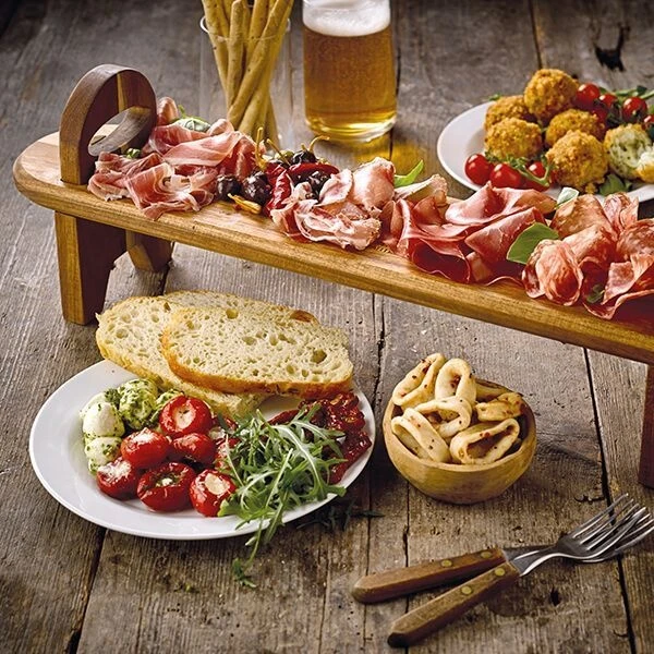The set contains 1 x raised wood serving board, perfect for Moroccan or Italian Mezze.