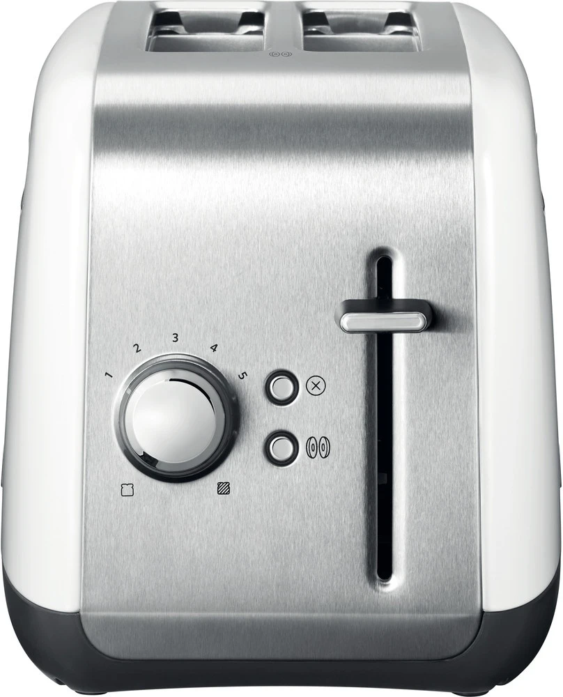 The 2 Slice Classic toaster 5KMT2115 is simple and efficient with a compact design. In a choice of classic colours, it has a sturdy all-metal body construction and chrome control knob. As well as choosing from 5 shade settings to get your perfect level of toasting, you can press the bagel button to toast the cut side while gently heating the outer side at 50% power. If you love artisan and homemade breads or English muffins, the toaster’s roomy 3.8 cm slots can accommodate your favourites. The self-centring racks in each slot make sure you’ll get nice, even results on thick or thin breads. Enjoy toasted treats at any time of day.