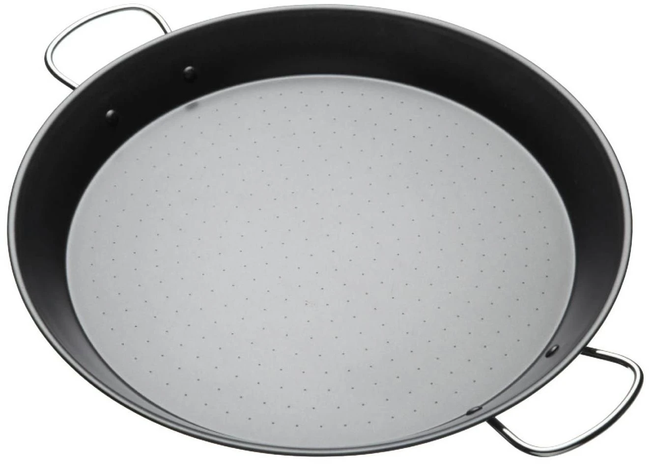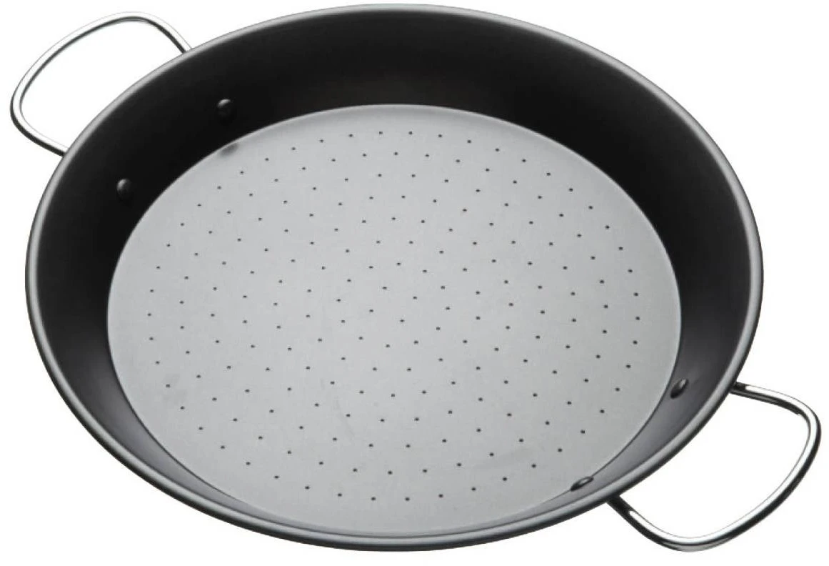 This authentic individual non-stick paella pan has a hammered base with twin riveted side handles for comfortable, easy use.