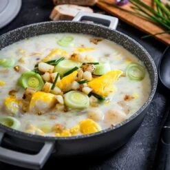 Designed to revolutionise your daily cooking, it features a stainless steel base, so you can use it on any hob. And that includes induction. it’s also oven-safe, which makes it great for slow-cooking. This smart, black pan is finished with an extremely tough, chemical-free, double scratch-proof layer. This cool, speckled grey coating also acts as a non-stick, so you can cook your favourite stews and casseroles with less oil – for healthier results.