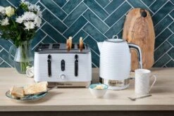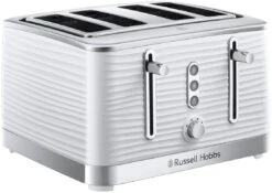 Toast up to 4 slices of bread at one time with this stylish and efficient toaster. Variable browning control lets you toast your bread exactly the way you like it, while cancel and re-heat functions give you full control over the toasting cycle. The toaster also boasts a defrost function, which lets you toast your bread directly from the freezer. The toaster is complete with a removable crumb tray, for easy cleaning, variable width slots, to fit all different types of bread, and a high-lift function, which gives you easy access to your bread once it is done toasting.