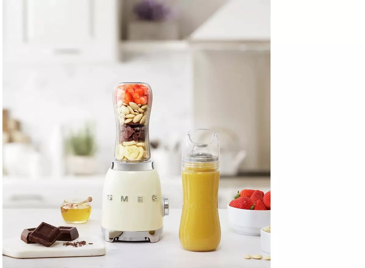 Smeg’s PBF01CRUK in cream is a stylish addition to any kitchen, Smeg’s personal blender includes two bottles to guarantee maximum versatility of use according to every taste. The 600ml Bottles-To-Go are the ideal tool for making fruit or vegetable-based smoothies or milkshakes.